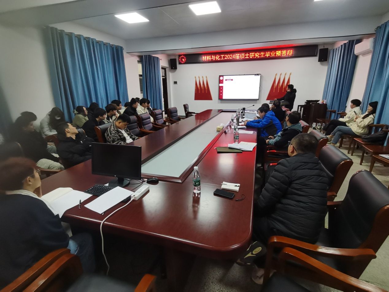 tyc33455cc太阳成集团于2024年3月13日下午3点在化材楼105会议室举行2024届材料与化工硕士研究生学位论文预答辩。预答辩由许志锋教授、刘梦琴教授、陈满生教授、李俊华教授和孙俊彬副教授任评审小组专家,朱小明博士担任预答辩秘书。21级硕士研究生均参加预答辩,部分研究生导师、在读硕士研究生参与旁听。