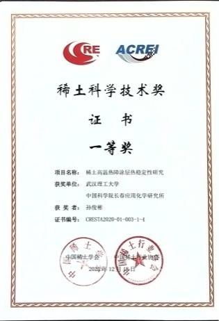 ②Sun Jun-Bin, Wang Jin-Shuang, Hui Yu, Chen Xiao-Long. Preparation and Properties of LaMgAl11O19 Thermal Barrier Coatings Doped with Gd2O3 [J]. Ceramics International, 2020, 46, 4174-4179.