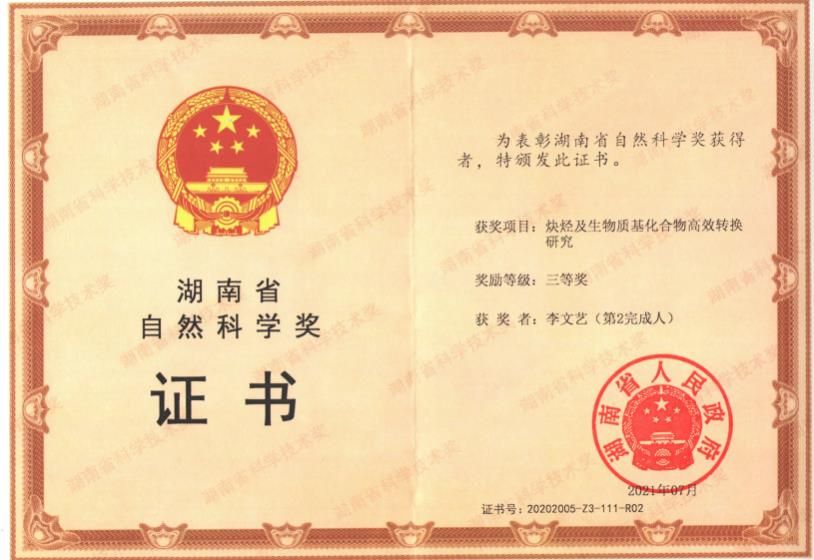 (5)湖南省教育厅重点项目:新型席夫碱类稀土配合物的合成、结构及其在催化环酯开环聚合中的研究,19A068,2020年-2022年。