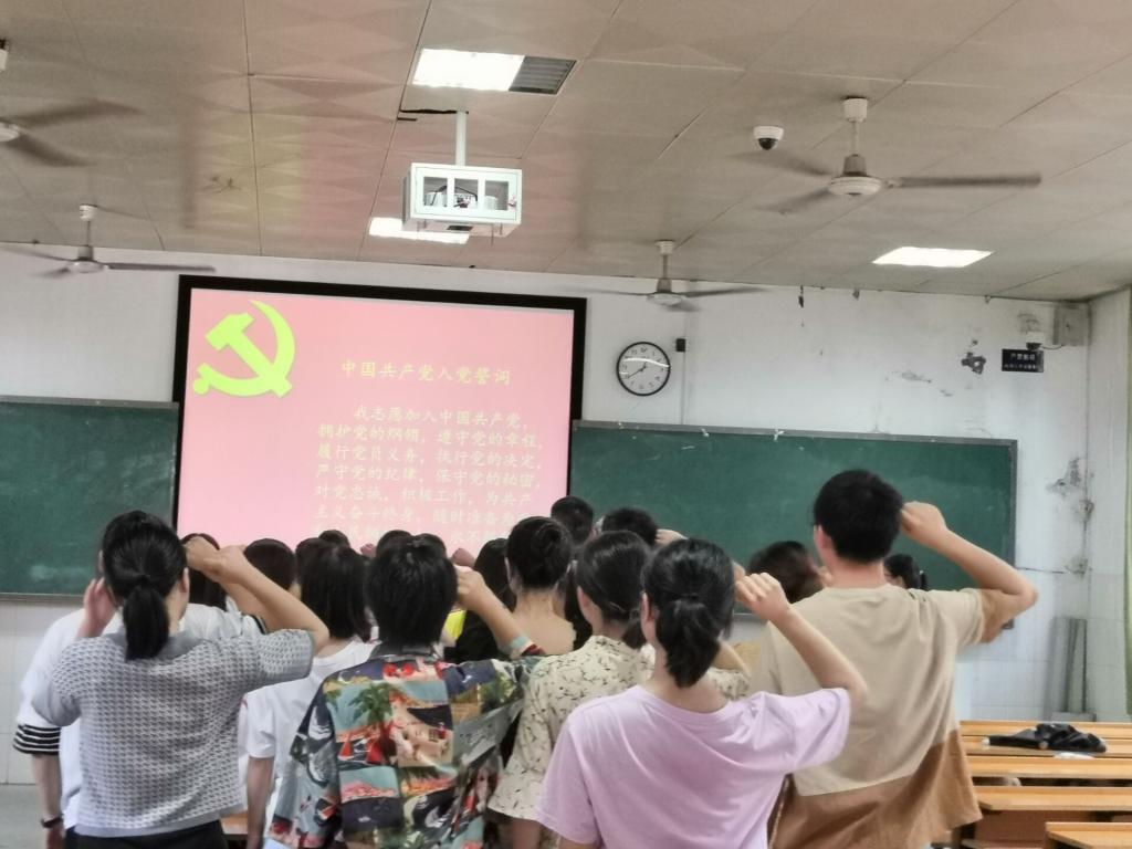 2019年9月12日中午,公司员工党员活动办公室于西校区外语楼101庄严举行tyc33455cc太阳成集团新党员宣誓仪式。本次仪式由党支部委员李玲主持,公司党支部副书记张月梅同志宣布新党员名单,参与本次仪式的还有2016-2017级新老党员。宣誓仪式分为五项,具体流程如下: