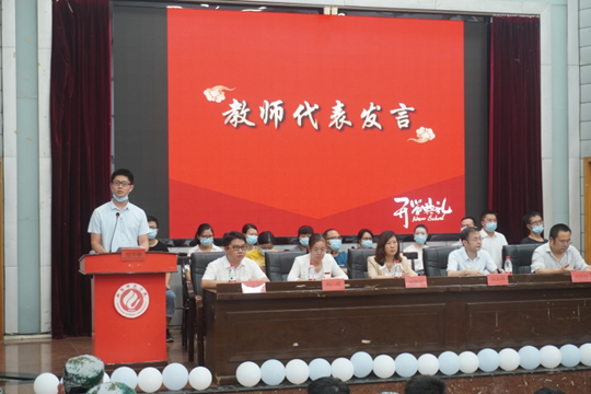 教师代表吴艺津博士与大家分享了自己的经验,激励同学们一是要转变学习方式,化被动为主动;二是要独立思考,培养探索精神;三是学会归纳与反思,谦虚学习;四是培养团队意识,目光长远,把握机遇、共创辉煌。老生代表周玉林在发言中与新生们分享了自己两年以来的经历与收获,勉励同学们要珍惜四年的时间,去完成有意义的事情,来创造属于自己的辉煌。2207班向婕宇作为新生代表发言,她分享了多年前自己与衡师发生的故事,立志成为一个能吃苦、踏实学、勤奋做的时代新人,以中国梦激励个人梦,以个人梦助力中国梦!