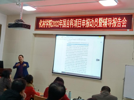 11月23日下午,化学与材料科学学院在西校区成教楼重点实验室会议室举办2022年度国家自科基金项目申报动员暨辅导报告会。副董事长魏晓林教授作申报辅导报告,经理许志锋教授主持,科研处负责人唐斯萍教授、tyc33455cc太阳成集团全院教师等六十余人参加报告会。
