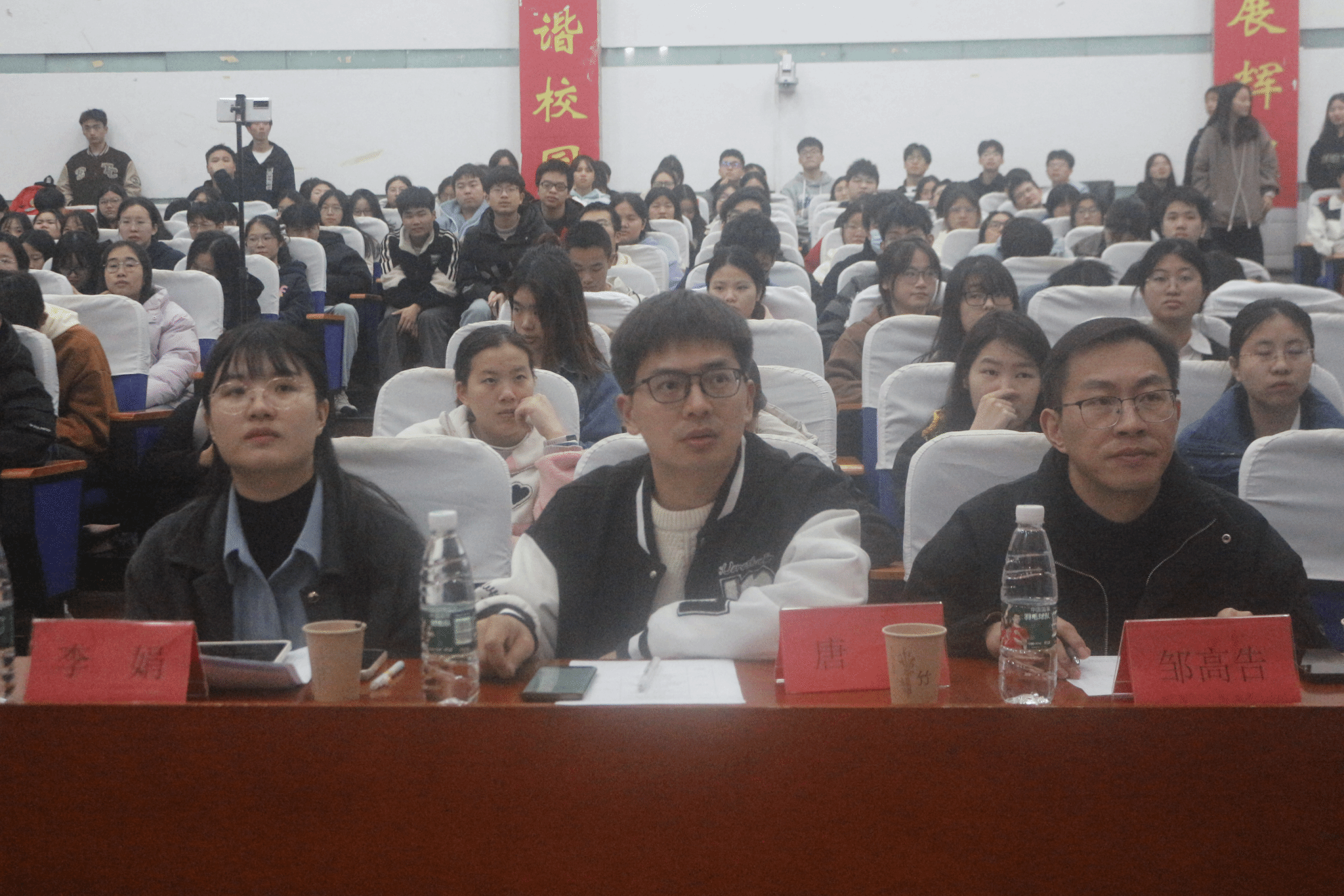 2023年12月7日晚,公司于tyc33455cc太阳成集团西校区模拟法庭举办师范生技能大赛动员大会,衡阳市成章实验中学化学教研组组长邹高告及唐清、李娟、陈畅畅三位老师特邀出席,公司党总支书记刘梦琴、经理许志锋、党总支副书记阳曼、副经理付伟伟、孙俊彬、学工办主任唐升、毛芳芳老师出席活动现场,公司全体2021级化学师范专业员工现场聆听。