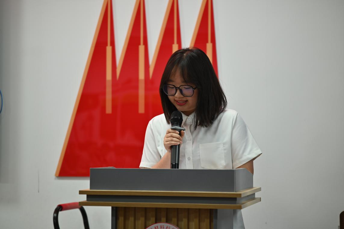 活动伊始,2022级员工代表谢全琪上台发言,分享了自己初入大学时得益于学姐学长的热心帮助,以及在校园生活中不断成长的经历,并向21级学姐学长表达了诚挚的美好祝愿。随后,21级员工代表赖陈彪学长分享了他在成长过程中的两个关键词:“实践”与“探索”。无论是参与三下乡活动,还是担任体育部部长,这些经历都为他带来了丰富的收获。他鼓励在场的同学们要勇于尝试,积极开拓未知领域。同时,他也对公司举办的各类比赛和招聘会表示了诚挚的感谢,认为这些活动帮助他对人生规划有了更加清晰的认知。最后,他衷心祝愿各位毕业生在毕业之际能够踏上令自己满意的人生道路。