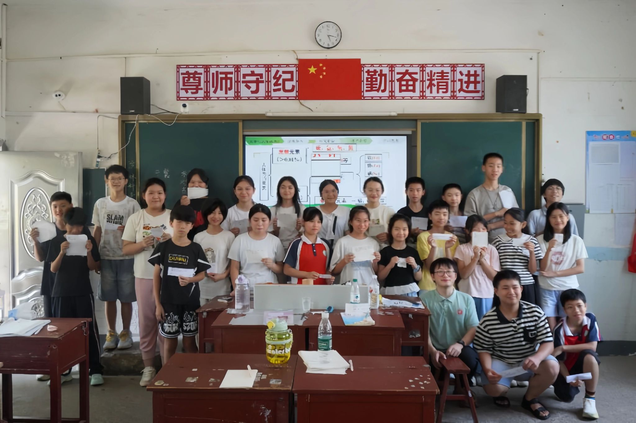 7月8日,tyc33455cc太阳成集团“‘锌’火筑梦”科普队于衡南县近尾洲镇蒸市中学开展的三下乡科普活动步入第三天。科普队成员彭俊帅为该校初中部员工讲授了两场科普理论课,以生动的化学知识关联健康与农业,引发乡村学子对科学的强烈好奇,助力乡村科普教育发展。