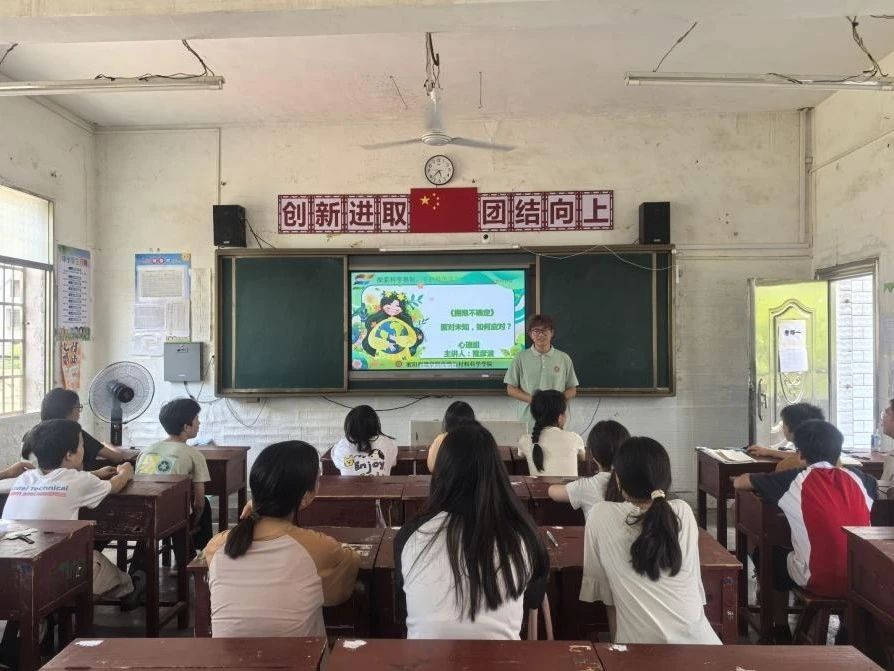 午休后,支教团队为员工们带来了新奇有趣的心理课程。考虑到初中生正处于身心快速发展的关键时期,心理课程以“面对未知,如何应对”为主题,通过趣味游戏、互动问答等多种形式展开。