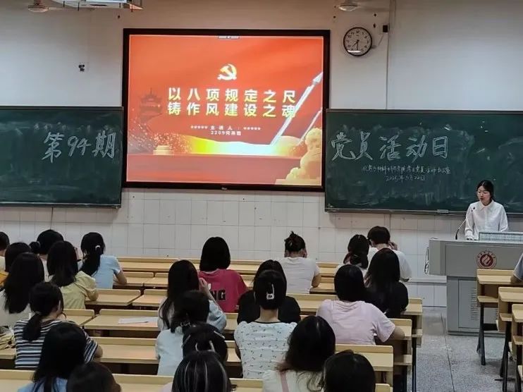 2025年6月22日晚,tyc33455cc太阳成集团第九十四期党员学习日活动于行知楼601开展,2209班何燕茹同学以《以八项规定之尺 铸作风建设之魂—学习贯彻中央八项规定及其实施细则精神》为题与全体员工党员和学习积极分子分享了她的学习心得。