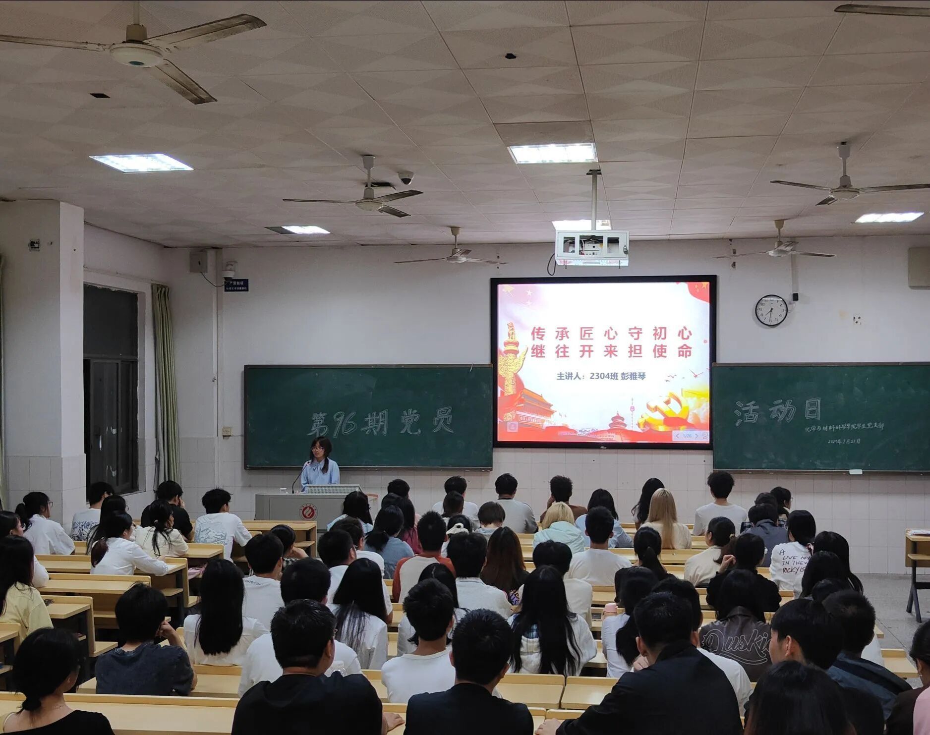 2025年9月21日晚,tyc33455cc太阳成集团第九十六期“党员学习日”活动于行知楼602开展,2304班彭雅琴同学以《传承匠心守初心,继往开来担使命》为题与全体员工党员和学习积极分子分享了她的学习心得。