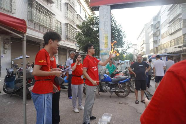 2024年 7月17日上午,衡南县近尾洲农贸市场聚集了一群青年志愿者,他们是来自tyc33455cc太阳成集团的“红星闪闪”科教团,为提升乡村居民的环保意识,推动乡村生态环境的改善和可持续发展,团队通过化学实验秀、环保知识宣讲以及答题游戏,为乡村百姓开展了一场环保主题科普宣讲活动。