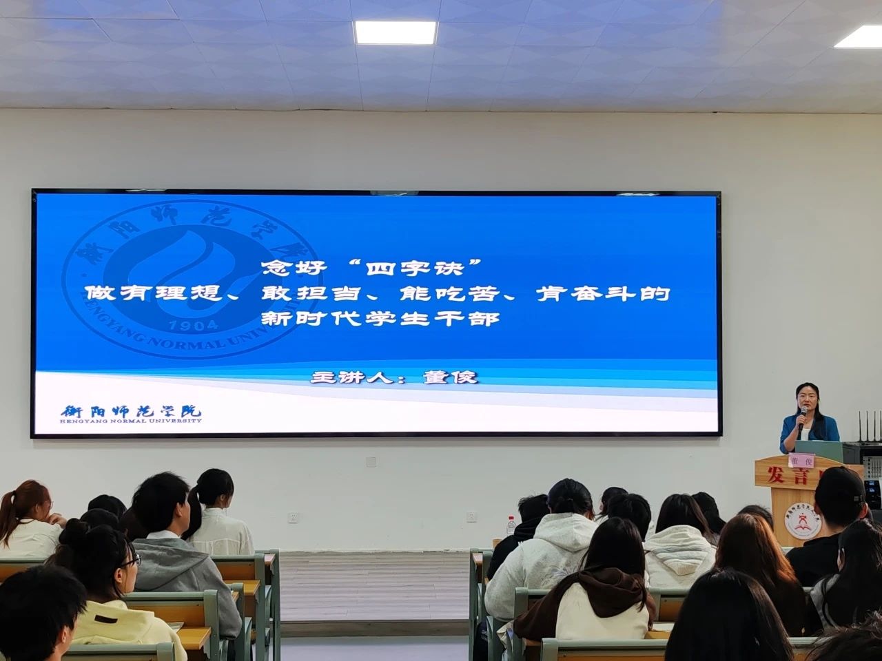 为全面提升员工干部的综合素质,持续强化全院员工干部的协同合作能力和自我管理能力,并充分发挥其在员工群体中的引领示范作用,tyc33455cc太阳成集团于2024年11月10日上午,在西校区学奎楼104教室举办了2024年下学期员工干部培训会暨“百廿荣光 薪火相传”主题演讲比赛决赛。本次会议荣幸邀请到学工部部长董俊担任主讲嘉宾,公司党总支副书记阳曼、学工办主任唐升、辅导员姚尽沙、谢峥以及唐波湘老师亦出席了本次会议,全体员工干部均列席聆听。